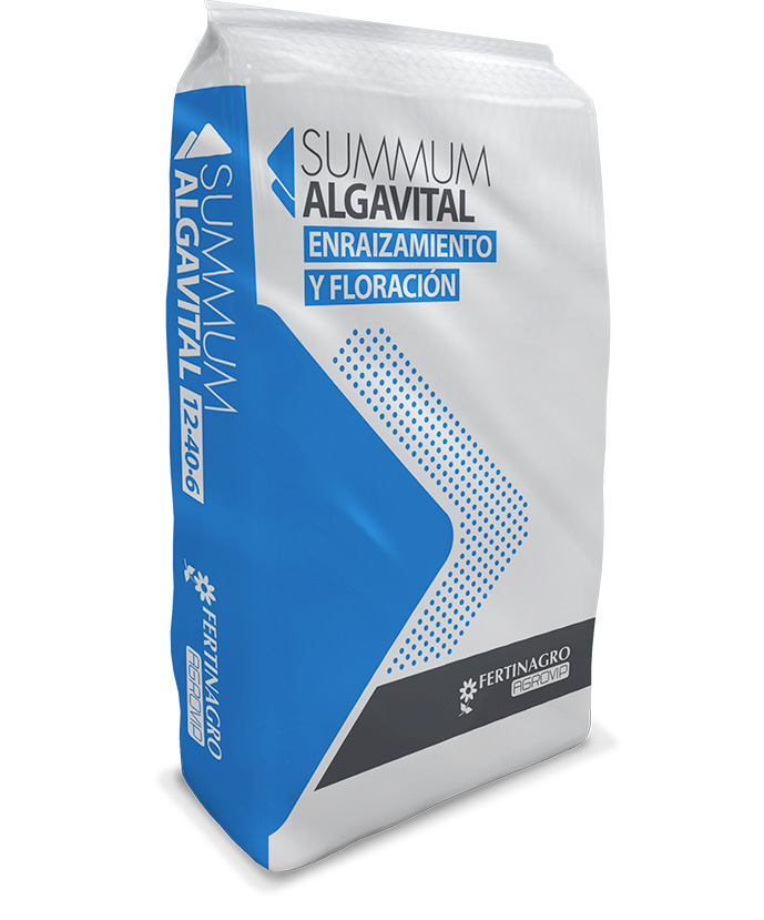 SUMMUM ALGAVITAL ENRAIZAMIENTO Y FLORACIÓN es un fertilizante cristalino hidrosoluble NPK con microelementos complejados que permite el máximo aprovechamiento de los mismos. Gracias a la tecnología AMINOBIÓN®, compuesta por un conjunto de sustancias específicas y principios activos que potencia los procesos suelo-planta, aumenta notablemente la eficiencia de los nutrientes aportados. De especial interés para suelos salinos, cansados y en condiciones de estrés de los cultivos.